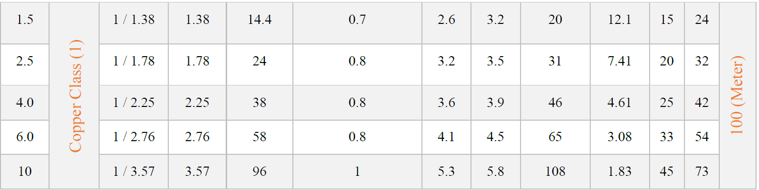 Conductor: Solid Copper Conductor – Class (1)