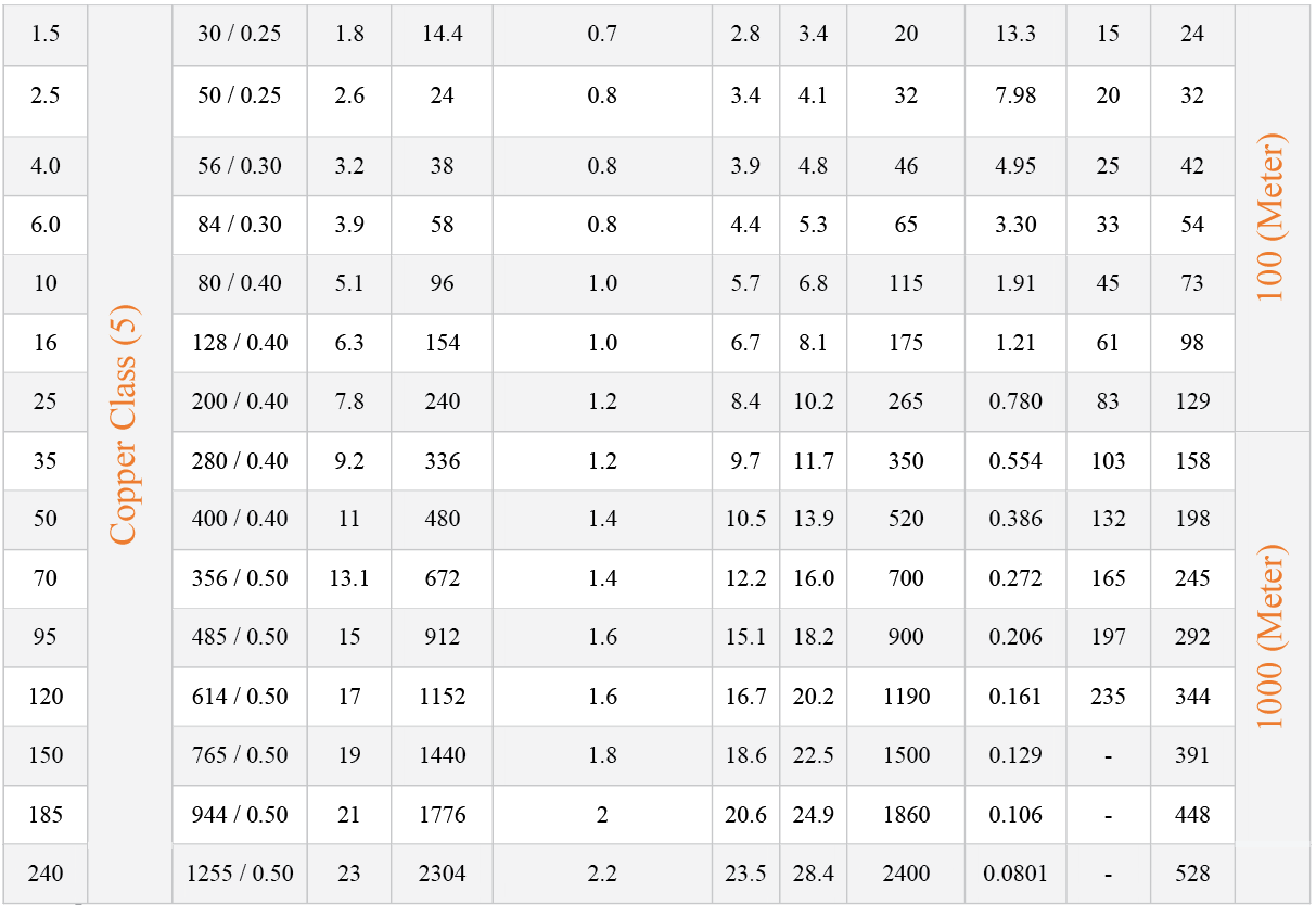 Conductor: Flexible Copper Conductor – Class (5)